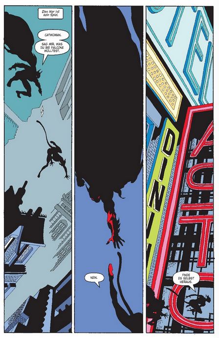 Die Liste der Verdächtigen für Holiday ist lang – neben den diversen Mitgliedern der Verbrecherfamilien geraten selbst Selina Kyle und Bruce Wayne in Verdacht. Welches Interesse genau Selina an Carmine Falcone hat? Hier wird es nicht ganz geklärt, sondern erst in der zweiten Fortsetzung (Catwoman: When in Rome).