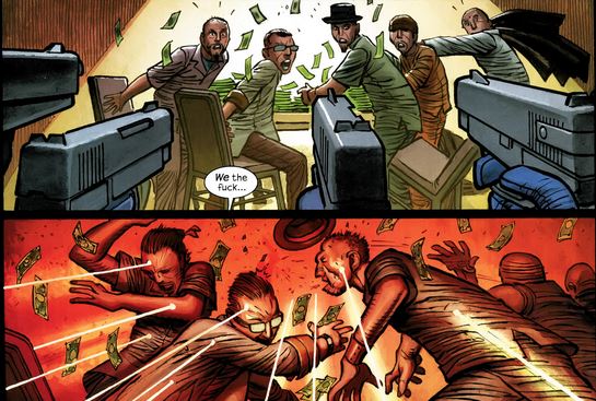 Doch Millar beendet seine Erfolgsserie ebenso knalliges wie zufriedenstellend, während ein Epilog weitere Comics zumindest mit Hit Girl nicht gänzlich unwahrscheinlich erscheinen lässt.