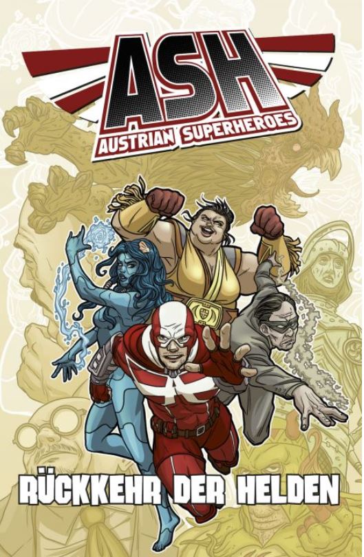 Die vierteilige Miniserie ASH – Die Rückkehr der Helden erschien letztes Jahr im Wiener Eigenverlag, finanziert durch Crowdfunding, und nun als Tradepaperback bei Cross Cult. Mittlerweile ist bereits die zweite Welle anlaufen und mit der LDH gibt es als Ableger auch eine Liga Deutscher Helden. Neben der Haupthandlung sind Nebenstränge und Origins eingebaut und von unterschiedlichen österreichischen Zeichnern umgesetzt – durchaus in verschiedenen Stilen.