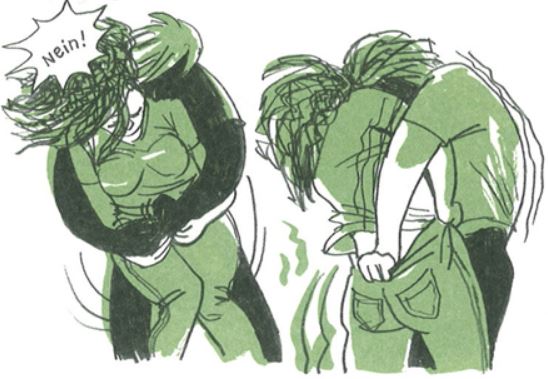Doch dieser sieht Ulli in erster Linie als Gefährtin und hat nur wenig Interesse an Sex und nichts gegen eine offene Beziehung. Daher hält Ulli die Augen offen. Sie trifft den Nigerianer Kimata, der ungefähr in ihrem Alter ist und sich illegal in Österreich aufhält. Beide landen recht schnell in der Kiste. Dort funktioniert alles bestens und auch für erotische Höhepunkte findet die Zeichnerin Ulli Lust in diesem Comic sehr ausagekräftige Bilder.