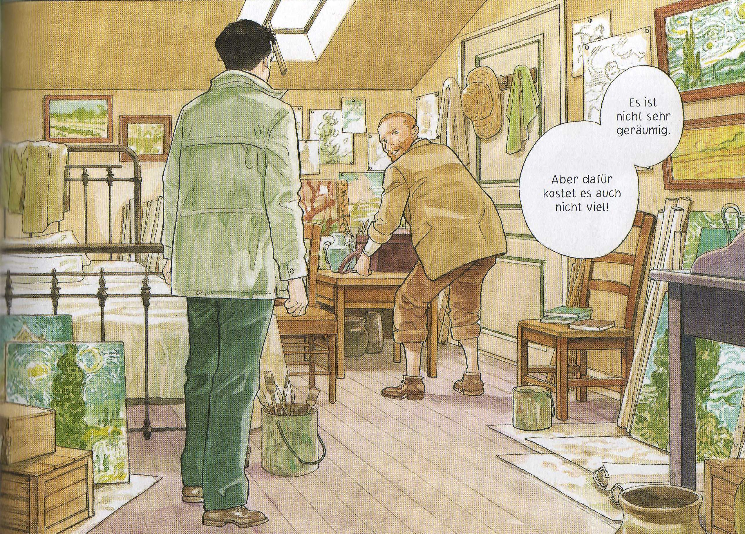 Als erstes trifft er auf eine Dame in historischen Gewändern, die sich als Nike von Samothrake entpuppt, also als jene griechische Siegesgöttin, deren kopf- und armlose Statue eins der bemerkenswertesten Ausstellungsstücke des Louvres ist. Bei einem Ausflug in das kleine Örtchen Auvers-sur-Oise erscheint dem Zeichner Vincent Van Gogh und natürlich spielt auch die Mona Lisa eine gewisse Rolle innerhalb des Comics.