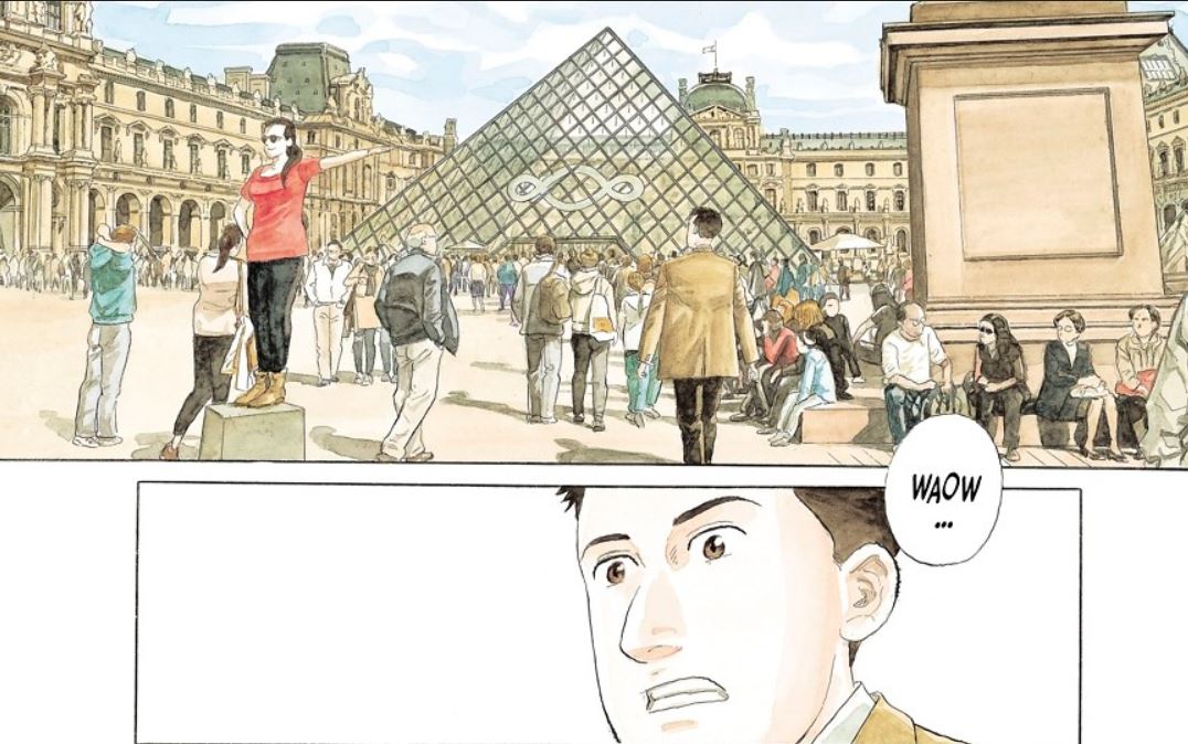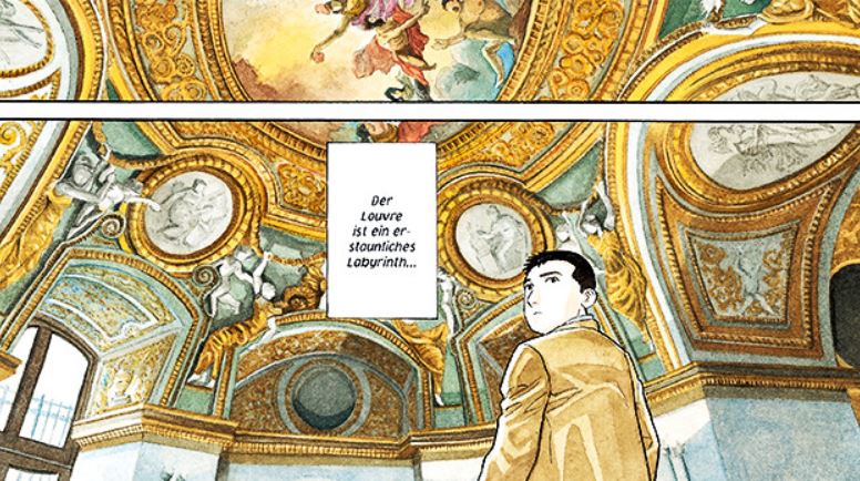 2014 fand der Japaner Jiro Taniguchi (Vertraute Fremde, Die Sicht der Dinge) Aufnahme in die Collection Le Louvre et la bande dessinée. Hierfür sprengte er ein wenig sein ansonsten übliches Veröffentlichungs-Schema. Die Wächter des Louvre erscheint zwar in japanischer Leserichtung, ist jedoch ein großformatiges gebundenes und farbiges Album. Dass Taniguchi nicht nur ein Meister der schwarzweißen Comic-Erzählung sondern auch ein begnadeter Maler ist, hat er immer wieder durch seine stimmungsvollen Titelbilder oder den viel zu wenigen farbigen Eröffnungsseiten von einigen seiner Mangas bewiesen.