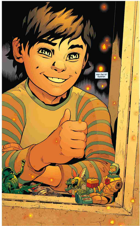 Mit viel Wortwitz und feinsinnigem Humor versteht es Bendis, seine Figuren und die Geschichte zum Leben zu erwecken. Die Bettszene zwischen Lois und Clark ist Kopfkino von allerbester Güte – der blaue Pfadfinder für ein erwachsenes Publikum. Was auffällt, ist, dass Bendis relativ viele Figuren, die man sonst nur aus dem Batman-Umfeld kennt hier in seine Superman-Geschichten einbindet (Killer Moth, Firefly). Die Geschichte endet mit dem sicherlich mysteriösesten Cliffhanger seit Action Comics #1 aus dem Jahre 1938. Auf der letzten Seite jedenfalls ist genau das zerbeulte grüne Auto zu sehen, dass Superman über sich hebt auf dem Cover der legendären Nummer #1 und gegen einen Felsen schleudert. Mal sehen, was es damit auf sich hat.