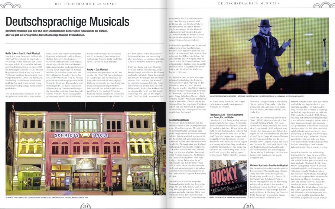 Für das Buch spricht auch, dass es für die deutsche Ausgabe noch ergänzt wurde. Aufnahme fanden hier auch einheimische Produktionen wie Linie 1 oder Elisabeth und ein Anhang beschreibt deutsche Musicals wie Heiße Ecke, Rocky, Hinterm Horizont oder den DDR-Erfolg Mein Freund Bunbury. Abschließend sei auch noch das thematisch passende schlichte aber ergreifende Glitzer-Cover erwähnt.